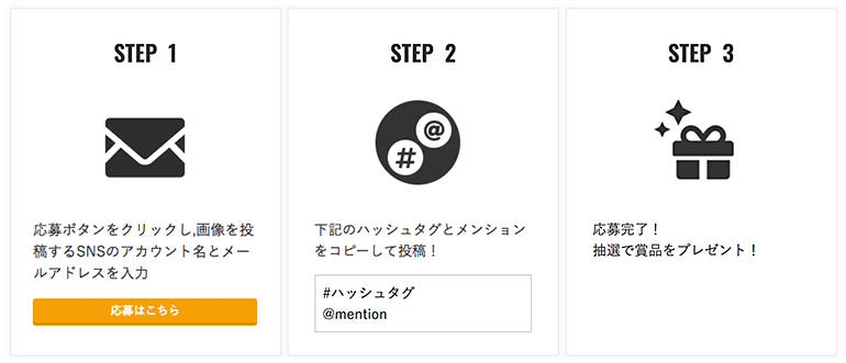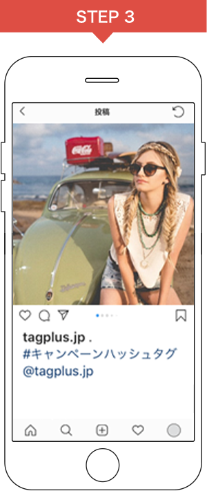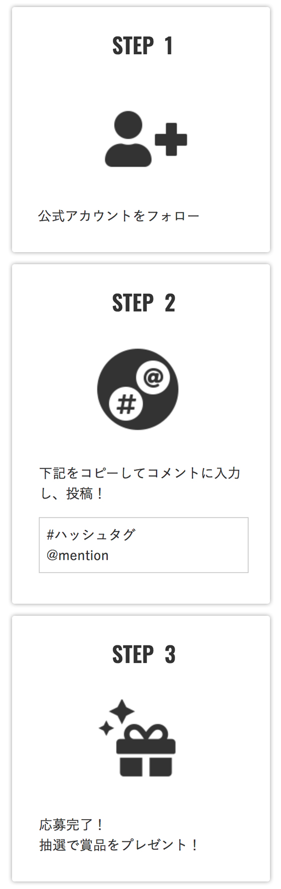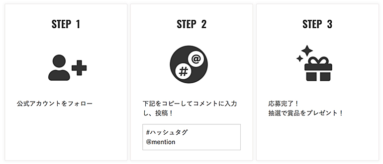 STEP2:#キャンペーンハッシュタグと@メンションまたはタグ付けするだけで参加が完了するわかりやすいキャンペーン = 参加母数の拡大