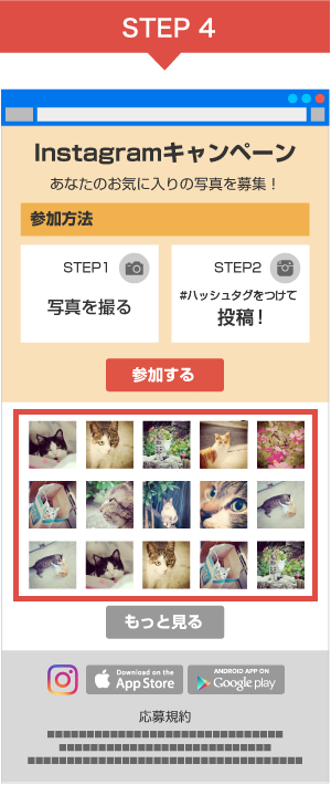 STEP3:投稿された写真がWEB上で一覧表示される = 参加者の写真がPick Upされる承認欲求へ訴求