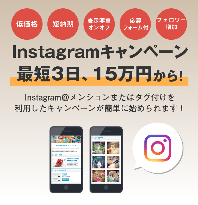 人気のInstagramキャンペーンを、低価格で開催することが可能です。